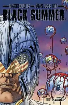 Black Summer is a comic book limited series written by Warren Ellis, illustrated by Juan Jose Ryp, and published by Avatar Press starting in June 2007. The plot revolves around the consequences of a superhero, John Horus, who kills the President of the United States and several of his advisers after discovering them to be war criminals.[1] The following seven issues detail the aftermath of the assassination.[2]
