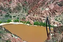 The Black Suspension Bridge (also known as the Kaibab Trail Suspension Bridge) spans the Colorado River in the inner canyon of Grand Canyon National Park. The span length is 440 feet (130 m).[1] The bridge is part of the South Kaibab Trail and is the river crossing used by mules going to Phantom Ranch. The Black Bridge and Silver Bridge, located about 700 metres (2,300 ft) downstream, are the only spans in hundreds of river miles.