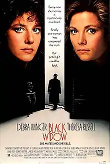 Black Widow is a 1987 American neo-noir[3] thriller film directed by Bob Rafelson, from a screenplay by Ronald Bass. It stars Debra Winger, Theresa Russell, Sami Frey, and Nicol Williamson. Dennis Hopper has a short role at the beginning of the film.