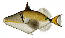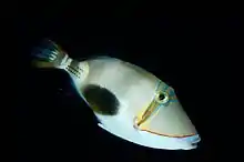 The blackbelly triggerfish (Rhinecanthus verrucosus) is a ray-finned fish in the family Balistidae found in the Indo-Pacific. It occasionally makes its way into the aquarium trade. It is sometimes known as the blackpatch triggerfish.