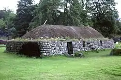 A blackhouse[1] (Irish: teach dubh [ˌtʲax ˈd̪ˠʊw]; Scottish Gaelic: t(a)igh-dubh[2] [t̪ʰə ˈt̪uh]) is a traditional type of house which used to be common in Ireland, the Hebrides, and the Scottish Highlands.