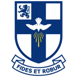 The coat of arms of the college is the third creation, dating back to 1936, and shows a blue cross and a dove in its natural colours on a silver field, with a lion rampant in the first quarter. This is blazoned in the 1937 College Annual as follows: