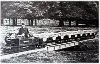 The 15-inch (381 mm) railroad was less than half a mile (800 m) long and ran from Blakesley Railway Station on the standard gauge East & West Junction Railway to the power plant and cowsheds at the back end of the property. It served primarily for the transport of coke, but was also occasionally used for transporting passengers from and to the nearby station.[1]
