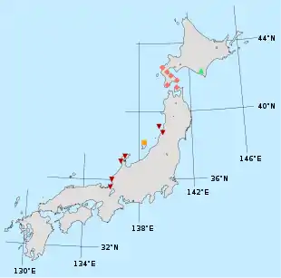 Blanfodia and Fukuia are the only two genera of Pomatiopsidae that are endemic to Japan.[1] They occur especially in the northern and western part of Japan on the coast of the Sea of Japan.[1] There is a unique climate in the Sea of Japan with high precipitation as snowfall during the winter in the area of distribution of Blanfordia.[1] Such species, unique to the region near the Sea of Japan, are known as "Japan Sea elements".[1]