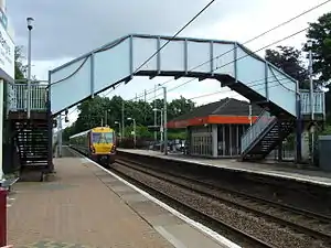 The station is 2 miles 29 chains (3.8 km) from the junction at Newton. There are two tracks; both are electrified on the 25 kV 50 Hz AC overhead system. Each track has a platform on the outside of the rail line, long enough for an eight-coach train.[4]