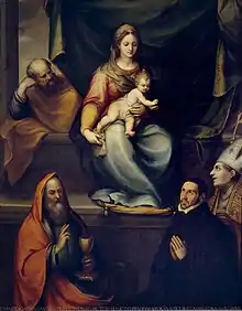 Holy Family with Ildephonsus of Toledo, John the Baptist, and master Alonso de Villegas, painted in 1589, now at the Museo del Prado in Madrid