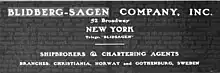 Blidberg Rothchild Company was a shipping company founded by Allan Blidberg and Sylvester Rothschild in New York City, United States. The shipping company has is start with a previous company Blidberg and Sagen Company founded by Tryggve Sagen and Allan Blidberg. Tryggve Sagen owned a ship in Oslo, Norway before coming to the United States in 1919. Sylvester Rothschild was born in 1896 in Sweden, he was a finance officer in Gothenburg. Rothschild came to America in 1919 and started the shipping company with Sagen. Blidberg and Sagen Company had shipping routes from New York to Scandinavian and Baltic ports. Sagen was president, Blidberg vice president and Sylvester Rothschild was the Secretary for the shipping company. Sylvester Rothschild was from Gothenburg Sweden, where he was the Vice-consul. In the 1930s Tryggve Sagen departed the company and the firm was renamed Blidberg Rothchild Company. The company had offices in Gothenburg and Norway. Blidberg Rothchild Company worked with an affiliated company Eastport Steamship Co of New York. Blidberg Rothchild Company also worked with an affiliated company Bridgeport Steamship Line of New York, a New Haven Railroad company.[1]