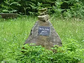 The Bloße Zelle is, at 480 m, the highest elevation on the Hils and in the Alfeld Uplands (Ith-Hils Upland). It lies on the boundary of the districts of Holzminden and Hildesheim, a good 4 kilometres northeast of Eschershausen.