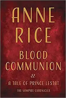 Blood Communion: A Tale of Prince Lestat is a novel by American writer Anne Rice, the 13th and last book in The Vampire Chronicles series, published on October 2, 2018.[1] It is the most recent of The Vampire Chronicles to be narrated by the vampire Lestat de Lioncourt, and it is the first of The Vampire Chronicles to contain illustrations (by Mark Edward Geyer). It is the final novel in the series after Rice's passing on December 11, 2021.