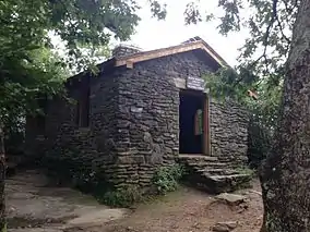 This peak has scenic views from the large rock formations that top the mountain. There is a hiker's shelter at the top of the mountain maintained by the Georgia Appalachian Trail Club, and at the bottom of the eastern side of the mountain is a hostel and store (at Neels Gap, where the Appalachian Trail intersects U.S. Highway 19/129) at the Walasi-Yi Interpretive Center. The summit shelter is a two-room stone cabin which was built by the Civilian Conservation Corps in 1934 and was listed on the National Register of Historic Places in January 2013.[5] The Walasi-Yi Center started out as log cabin constructed in the early 20th century by a logging company. It was renovated and expanded by the Civilian Conservation Corps in 1933-38 into a larger stone building.[6] The Center now houses a store; its breezeway is the only place the Appalachian Trail passes through a man-made structure.[6]