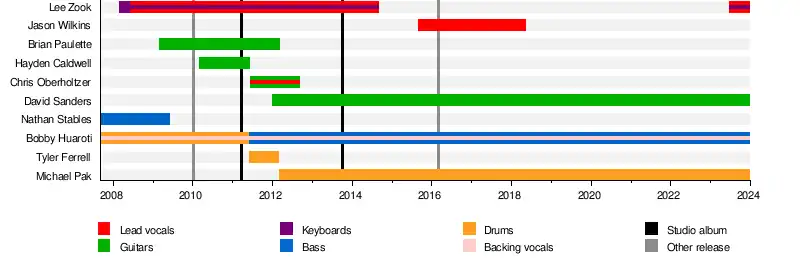 • Lee Zook – lead vocals, keyboards (2008–2014; 2023–present)