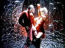 "Blood on the Dance Floor" was the only track from Blood on the Dance Floor: History in the Mix to appear on the set list of the HIStory World Tour.[19] The music video for "Blood on the Dance Floor" was directed by Jackson and Vincent Paterson. Filming occurred in February 1997, when Jackson's first child Prince was born.[20] It premiered on Top of the Pops in the UK on March 28, 1997, several weeks ahead of its release as a single.[1] The video opens with a thrown switchblade impaling a spray painted image. The impaled image is that of a blood dripping love heart with "SUSIE + ME" scrawled across it. Jackson and a group of dancers then enter a salsa dance hall and he begins to dance with a woman, "Susie", while shaking a piece of percussion. Jackson then appears seated while the woman dances seductively above him on a table top.[21]