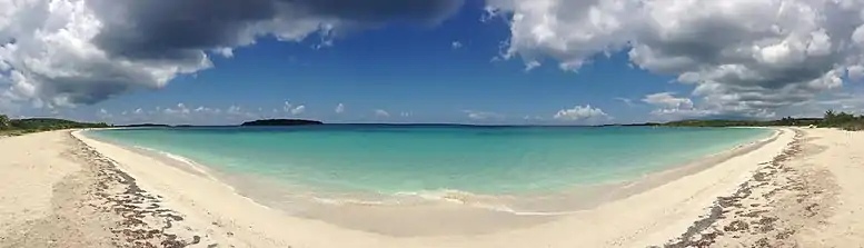 Blue Beach, better known as La Chiva Beach (Spanish: Playa La Chiva), is a popular beach on the southern coast of Vieques in barrio Puerto Ferro. The beach is considered one of the best in both Vieques and Puerto Rico for its breathtaking scenery, its soft sand and crystal clear water, ideal for swimming and snorkeling.[1][2][3] The beach is known as La Chiva Beach by locals, and its English name originated as a nickname that was given to it by members of the US Navy.[4] The area was formerly used by the Navy but it has been declared safe for visitors; however, beachgoers are prohibited from entering La Chiva Key due to the risk of unexploded ordnance.[4] The beach was closed for a time after the destruction caused by Hurricane Irma in 2017 but it reopened the next year.[5]