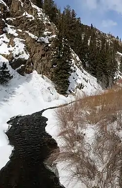![]() The headwaters of Blue Creek in Blue Creek Canyon along U.S. Highway 50 in Gunnison County, Colorado | |