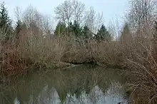 Wetland plants near ponds north and west of the lake include cattails and rushes that provide habitat for marsh birds such as red-winged blackbirds. Swallows are common in summer, and American goldfinches and other migratory birds visit the park in large number. Cottonwoods, alders, dogwoods, willows, and conifers grow in the park as do many shrubs including elderberries, spiraea, and Oregon-grape. The park is frequented by muskrats, voles, raccoons, and the occasional coyote.[11]