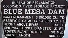 - 1 2 "Blue Mesa Dam". U.S. Bureau of Reclamation. Retrieved 11 May 2011.