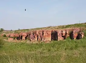 ![]() Sioux Quartzite bedrock in Blue Mounds State Park | |