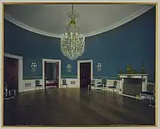 Redecoration of the Blue Room was funded by oil company executive Charles Bierer Wrightsman and his wife, Jayne (a close friend of Mrs. Kennedy's).[13]