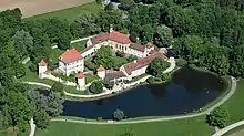 Near the castle, a memorial by the sculper Hubertus von Pilgrim was set up to remember the thousands of victims of the death march that the prisoners of the Dachau concentration camp were forced to go on. This memorial is one of 22 identical sculptures erected along the routes of the death marches.[1]