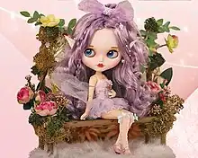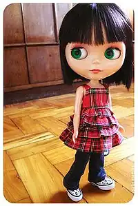 Blythe is a fashion doll, about 28 cm (11 inch) tall, with an oversized head and large eyes that change color with the pull of a string. It was created in 1972 and was initially only sold for one year in the United States by toy company Kenner (later purchased by Hasbro). In 2001, the Japanese toy company Takara[lower-alpha 1] began producing new editions of Blythe dolls. There is a network of hobbyists who customize the doll for resale and create clothing and shoes for Blythe. Enthusiasts share photographs of their work and other types of dolls on the Internet.[1]
