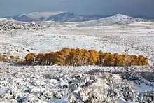 The Bodie Hills is a low mountain range in Mono County, California, in the United States.[2] The highest peak is Potato Peak at an altitude of 10,220 ft (3,115 m).[1] The Bodie Hills are between Bridgeport and the Nevada border, where they become the Bodie Mountains in Mineral County, Nevada. The Sierra Nevada lies to the west. The mining district and town of Bodie, California, is located in the Bodie Hills.