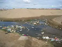 The lake has also served as an important source of aquatic life especially in terms of vegetables and fish.[13] With the Lake being 90% filled, the aquatic life has been eliminated from the area.