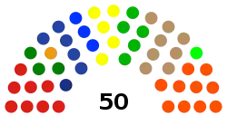 For the 2024 legislative election, the legislature will have 50 elected members from 5 electoral districts.[16] The current speaker, Atang Trisnanto of the Prosperous Justice Party, took office on 26 September 2019.[17]