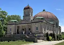 The cemetery was established by members of Chicago's Czech community in 1877.[2] The community had been outraged when a Czech Catholic woman named Marie Silhanek was denied burial at several Catholic cemeteries in Chicago because she supposedly never made her Easter Duty (going to confession and Holy Communion at least once during the Easter season), which is incumbent on all Catholics, even today.[3] In response, the Czechs purchased land in what was then Jefferson Township to create a cemetery that they themselves could control.[4] The original plot of land was 50 acres (200,000 m2). Over the years, the cemetery expanded to 126 acres (0.51 km2).[5]