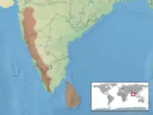 B. beddomei is found in India, in northern parts of the Western Ghats in Maharashtra state (Bhimashankar, Mulshi, Koyna, Vasota). It is also found in Gujarat, Goa and northern karnataka[5] in the hill ranges.[6]