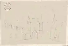 Count Thomas Ignatius of Immerzeel (?-1677) was the next Lord of Bokhoven. Probably from 1654, but his official investiture as Lord of Bokhoven came only in 1657. In 1660 he married Magdalena 't Serclaes de Tilly (?-1684).[8] There is a drawing of Bokhoven Castle seen from across the Meuse, dated 1676. In light of what happened next, this might render an earlier situation.