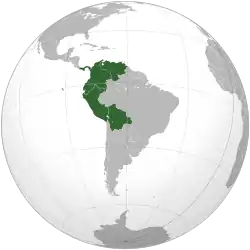 The Bolivarian countries[1] are six Hispanic American countries (Bolivia, Colombia, Ecuador, Panama, Peru and Venezuela) whose republican origin is attributed to the ideals of Simón Bolívar and the independence war led by the Venezuelan military in the viceroyalties of New Granada and Peru.