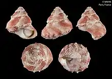 - ↑ Alf A. & Kreipl K. (2011) The family Turbinidae. Subfamilies Turbininae Rafinesque, 1815 and Prisogasterinae Hickman & McLean, 1990. In: G.T. Poppe & K. Groh (eds), A Conchological Iconography. Hackenheim: Conchbooks. pp. 1-82, pls 104-245.