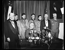 Smith (left)and a Boy Scout troop with President Franklin Roosevelt (seated), Colin H. Livingstone and James E. West, 1935