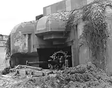 - ↑ The German Battery Hamburg, located six miles inland, had four 279 mm (11 in) guns, well separated, protected by steel shields similar to naval gun turrets, and reinforced concrete casemates. It was manned by naval gunners. Supporting them nearby were six 88 mm (3 in), six heavy and six light antiaircraft guns. The battery was distinguished by long range, 40,000 yd (37,000 m), and the arc of train. The guns were sited to cover the westerly sea approaches to Cherbourg. They had an easterly limit of fire.[6])