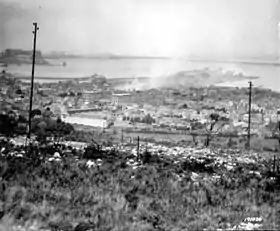 The bombardment of Cherbourg took place on June 25, 1944, during World War II, when ships from the United States Navy and the British Royal Navy attacked German fortifications in and near the city, firing in support of U.S. Army units that were engaged in the Battle of Cherbourg. In doing so, the Allied naval forces engaged in a series of duels with coastal batteries and provided close support to infantry as they fought to gain control of the city. The bombardment was initially scheduled to last just two hours but it was later extended by an hour to support army units attempting to break into Cherbourg's city streets. After the bombardment, German resistance lasted until June 29, when the port was captured by the Allies. Afterwards, the task of clearing the port for use lasted several weeks.