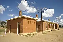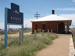 The Bomen railway station is a heritage-listed closed railway station located on the Main South line in Bomen in the City of Wagga Wagga local government area of New South Wales, Australia. The property was added to the New South Wales State Heritage Register on 2 April 1999.[1] Passenger trains no longer stop at the station.[2]