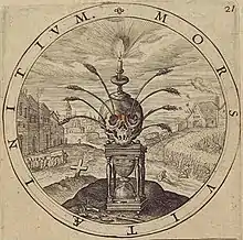 The Roman Catholic Bona Mors Confraternity (Bona Mors is Latin for "Good" or "Happy Death") was founded 2 October 1648, in the Church of the Gesu, Rome, by Father Vincenzo Carafa,[1] seventh General of the Society of Jesus. In 1729 it was raised to an archconfraternity by Benedict XIII. The object of the association is to prepare its members by a well-regulated life to die in peace with God.