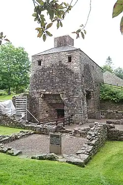 The industrial complex was built in 1753[2] by Richard Ford's small business,[3] the Newland Company. The site was chosen because there was enough wood in the area for the production of charcoal, as well as the fact that there was enough water pressure in the river to drive a water wheel. As the company itself was established in Cumbria, the blast furnace was managed by a local representative of the firm. During construction, most of the building materials were brought in from Cumbria. For the furnace to produce pig iron, it first had to be brought up to temperature, which took about one week. The oven was used almost continuously for nine months at a time.