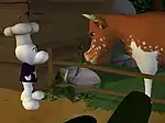 Bone: The Great Cow Race screenshot, where Phoney Bone (left) is with a cow.
