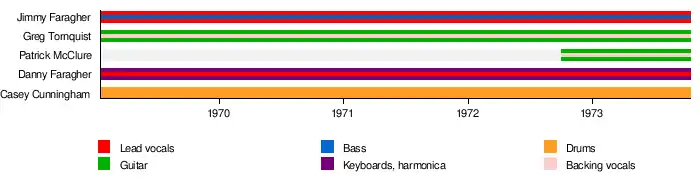• Jimmy Faragher – lead vocals, bass, occasional guitar (1969–1973)