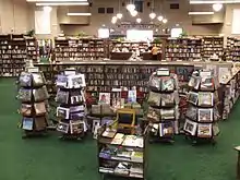 In June 2006 the theatre building reopened as a Tattered Cover bookstore.[6] While few changes were made to the exterior, the sloped flooring of the theatre had to be leveled and the interior redesigned for retail trade.[3][6] The redesign, executed by architect Josh Comfort, retained many "historical details and finishes"; for example, some original red mohair-covered seats were retained in two rear balcony areas, and the original orchestra pit, accessed via a ramp, was filled with a display of "books on the performing arts".[3][6] The backstage dressing rooms, rehearsal area, and offices made way for a restaurant and coffee shop. The development company received the 2006 Community Preservation Award from Historic Denver for the project.[3][4]