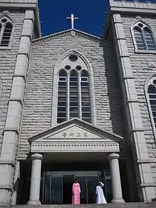 The church has since been rebuilt and relocated in 2008,[7][1] for a price of four billion won (4.3 million dollars), paid entirely by the South Korean Presbyterian Church Association.[8]