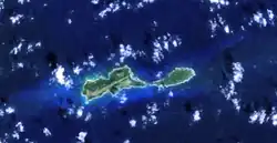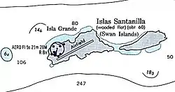 The Swan Islands (Spanish: Islas Santanilla or Islas del Cisne, named Islas de las Pozas by Christopher Columbus in 1502) is a chain of three islands located in the northwestern Caribbean Sea, approximately 153 km (95 mi) northeast of the eastern coast of Honduras,[1] with a combined land area of 3.1 km2 (1.2 sq mi).[2]
