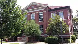 The Boone County Courthouse is a historic courthouse in Harrison, Arkansas. It is a two-story brick structure, designed by noted Arkansas architect Charles L. Thompson and built in 1907. It is Georgian Revival in style, with a hip roof above a course of dentil molding, and bands of cast stone that mark the floor levels of the building. It has a projecting gabled entry section, three bays wide, with brick pilasters separating the center entrance from the flanking windows. The gable end has a dentillated pediment, and has a bullseye window at the center.[2]