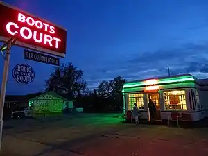- ↑ "Route 66's Boots Court Motel plans to finish renovations by late summer". July 12, 2022.