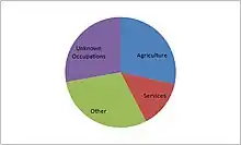 Unlike the 1881 Census data[10] agricultural employment is now barely existent in the village due to the fact that food is now transported nationwide rather than just locally and the UK imports much of its produce, furthermore advancement in technology means less staff are required. Increasing service and manufacturing employment makes up 93.3% of Boraston's occupational categories. The increase in manufacturing reflects a more industrialised economy, despite the 1811 Census data being recorded in the time of Industrial Revolution; Boraston had little involvement as a small remote community with a small work force. An increase in services as an occupational category also reflects the UK's shift from primary production to having an increased tertiary sector of the economy.