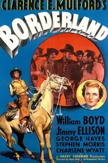 Borderland is a 1937 American Western film directed by Nate Watt and written by Harrison Jacobs. The film stars William Boyd, James Ellison, George "Gabby" Hayes, Morris Ankrum, John Beach, Nora Lane, and Charlene Wyatt. The film was released on February 26, 1937, by Paramount Pictures.[1][2]