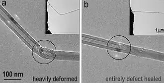 - ↑ Golberg, Dmitri; Costa, Pedro M. F. J.; Mitome, Masanori; Bando, Yoshio (2009). "Properties and engineering of individual inorganic nanotubes in a transmission electron microscope". Journal of Materials Chemistry. 19 (7): 909. doi:10.1039/B814607A.