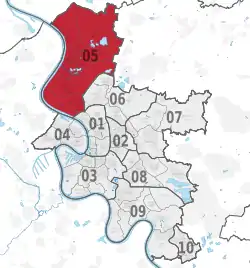 Borough 5 (German: Stadtbezirk 5) is a northern borough of Düsseldorf, the state capital of North Rhine-Westphalia, Germany. Düsseldorf's International Airport is located in the borough. It is the largest borough by land area, but also the least populated. The borough covers an area of 50.75 square kilometres and (as of December 2020) has about 34,500 inhabitants.[1]