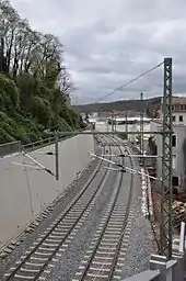 In 2013, the upgrade of the section used by the S-Bahn Dresden was carried out, which involved blockading of the line between Meißen Triebischtal and Meißen. The new Meißen Altstadt station was built near the centre of Meißen. In addition, the second track was restored in the section between Meißen Altstadt and Meißen.[5] With the completion of the work, the S1 service to Meißen-Triebischtal was restored on 30 November 2013.[6]